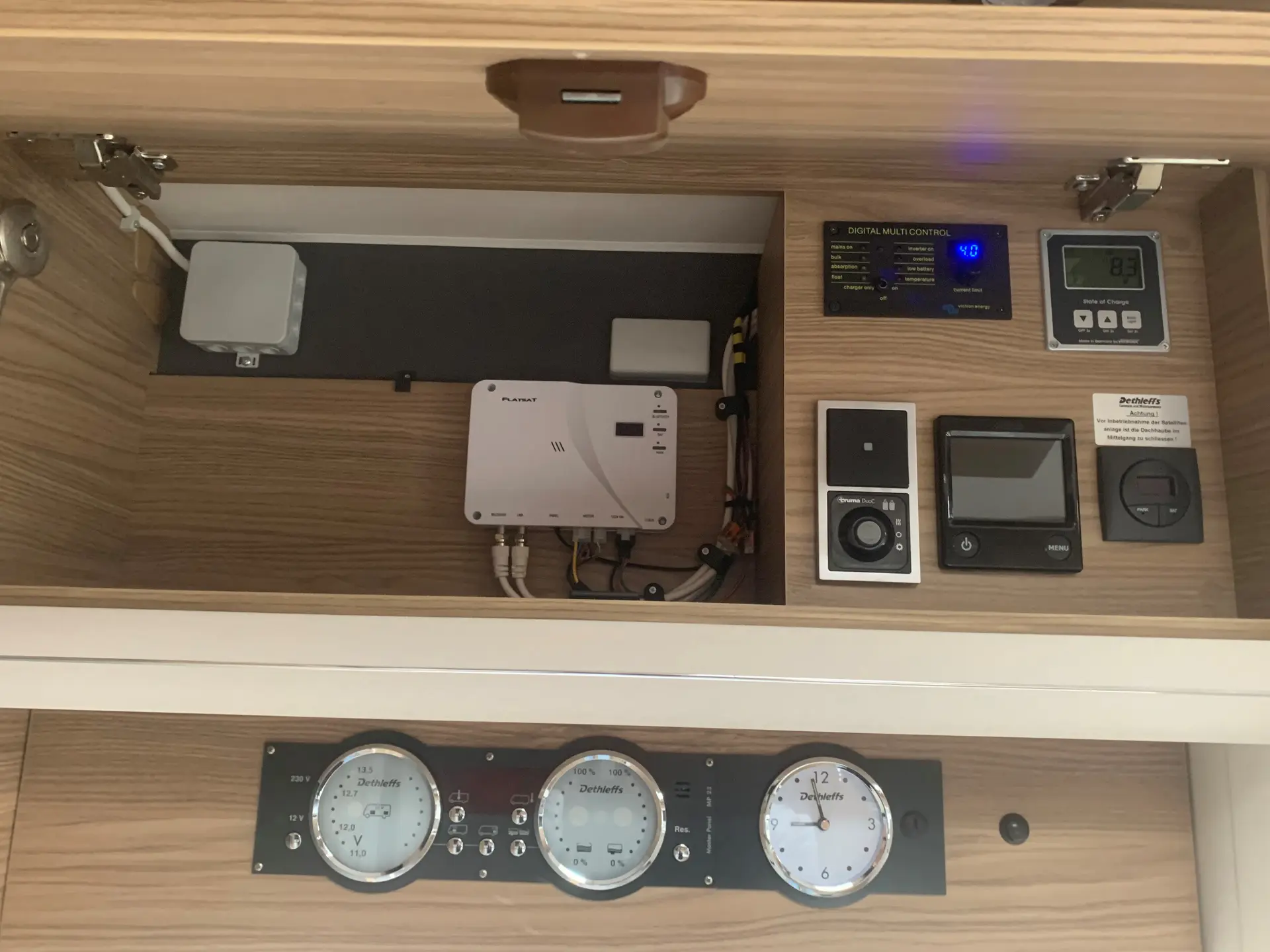- Dual Battery System Paket 2 (Victron PowerAssist und PowerControl, Elektroblock EBL 102, Victron Bedienpaneel über der Aufbautür, Victron Energy MultiPlus Lade-/Wechselrichterkombination 3000W/120A, 336 Ah Lithium Batterie)