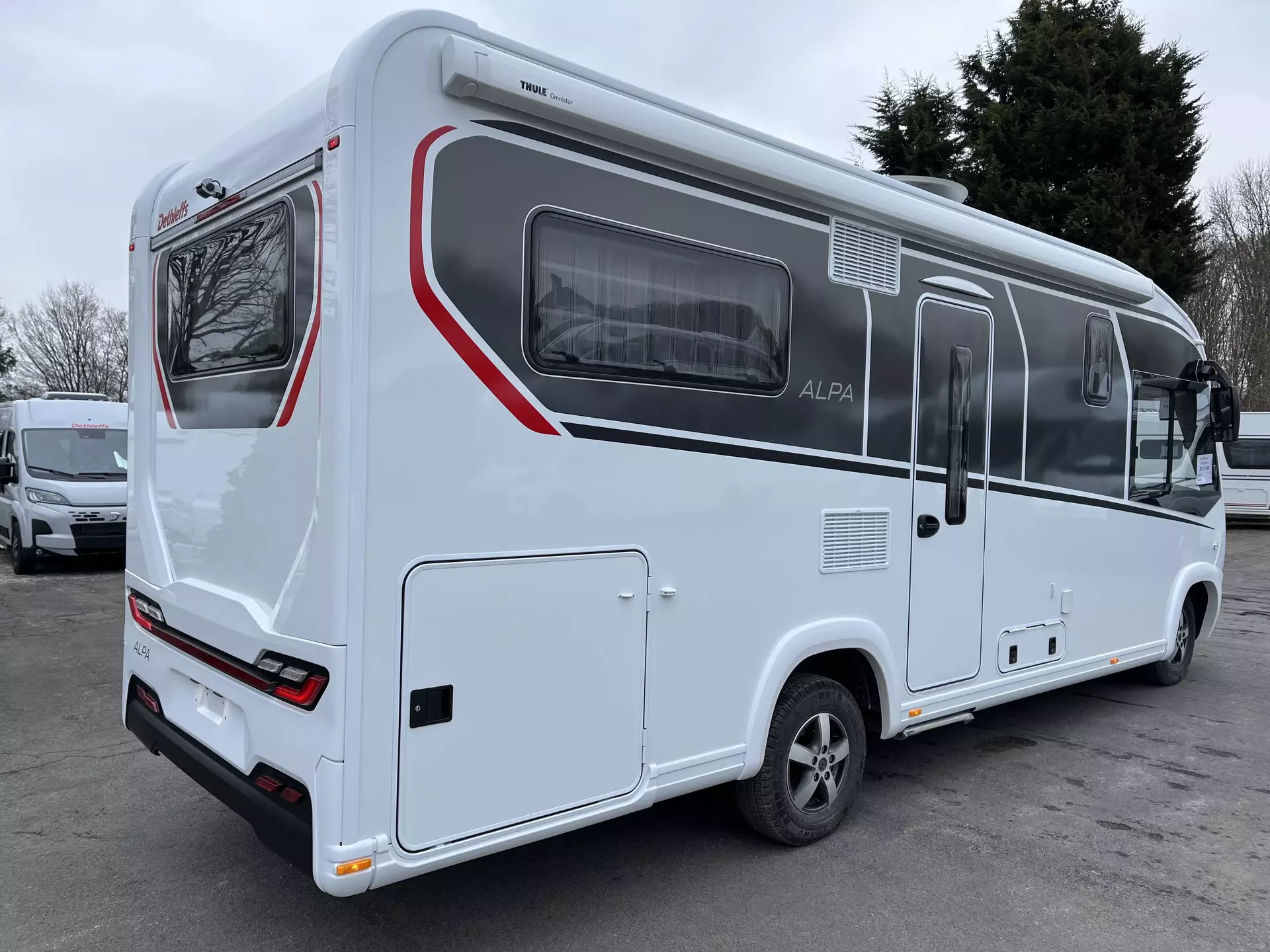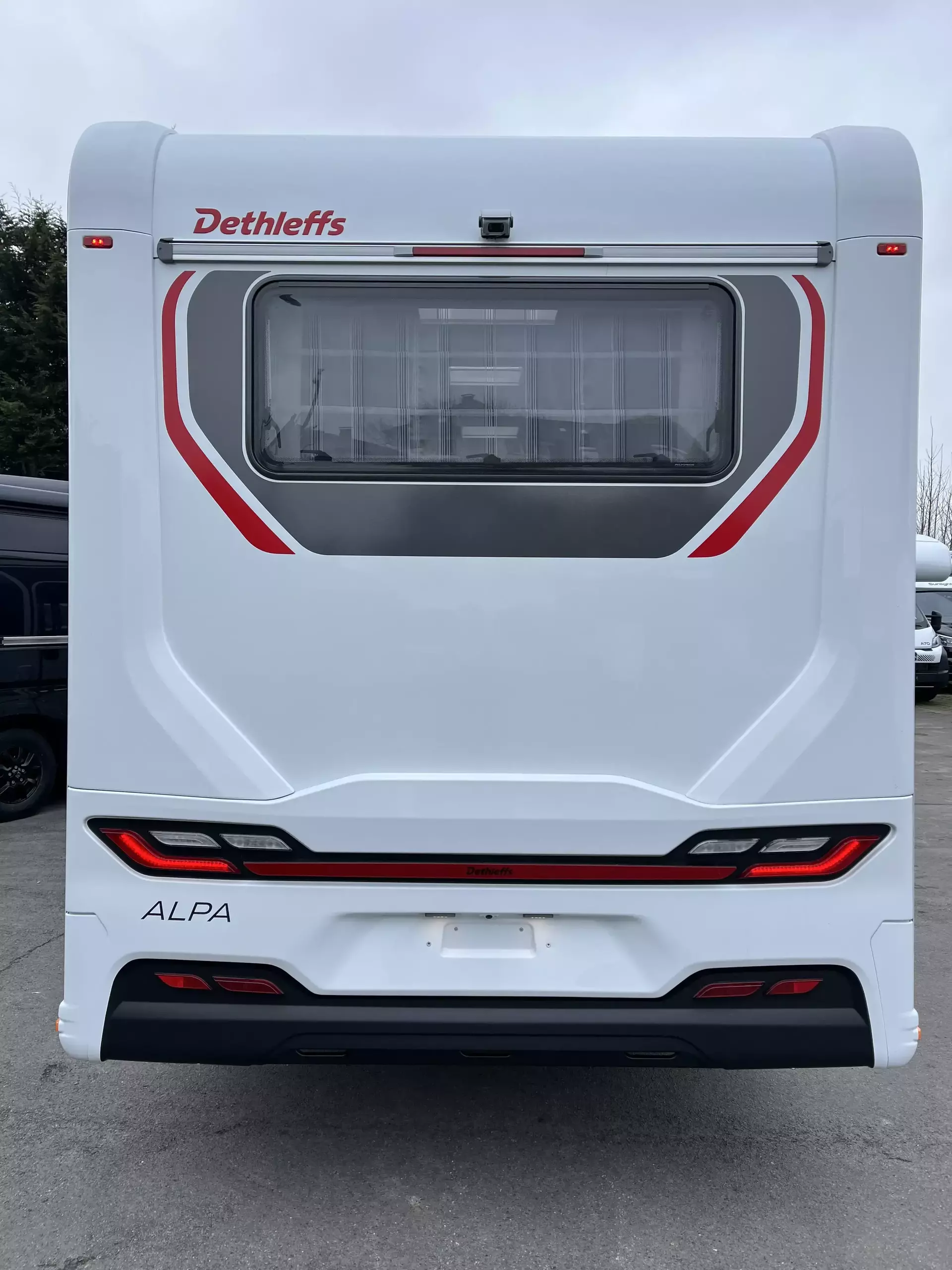 - GT Paket ALPA I (Außendesign GT (Heckleuchtenträger mit schwarzem Diffusor, Kühlergrill mit Chromkeder, Skidplate "rot"), LED-Abblendlicht, Hoher charakteristischer Dethleffs Exklusiv Heckleuchtenträger mit ShapeLine LED Rückleuchten und 3. Bremsleuchte)