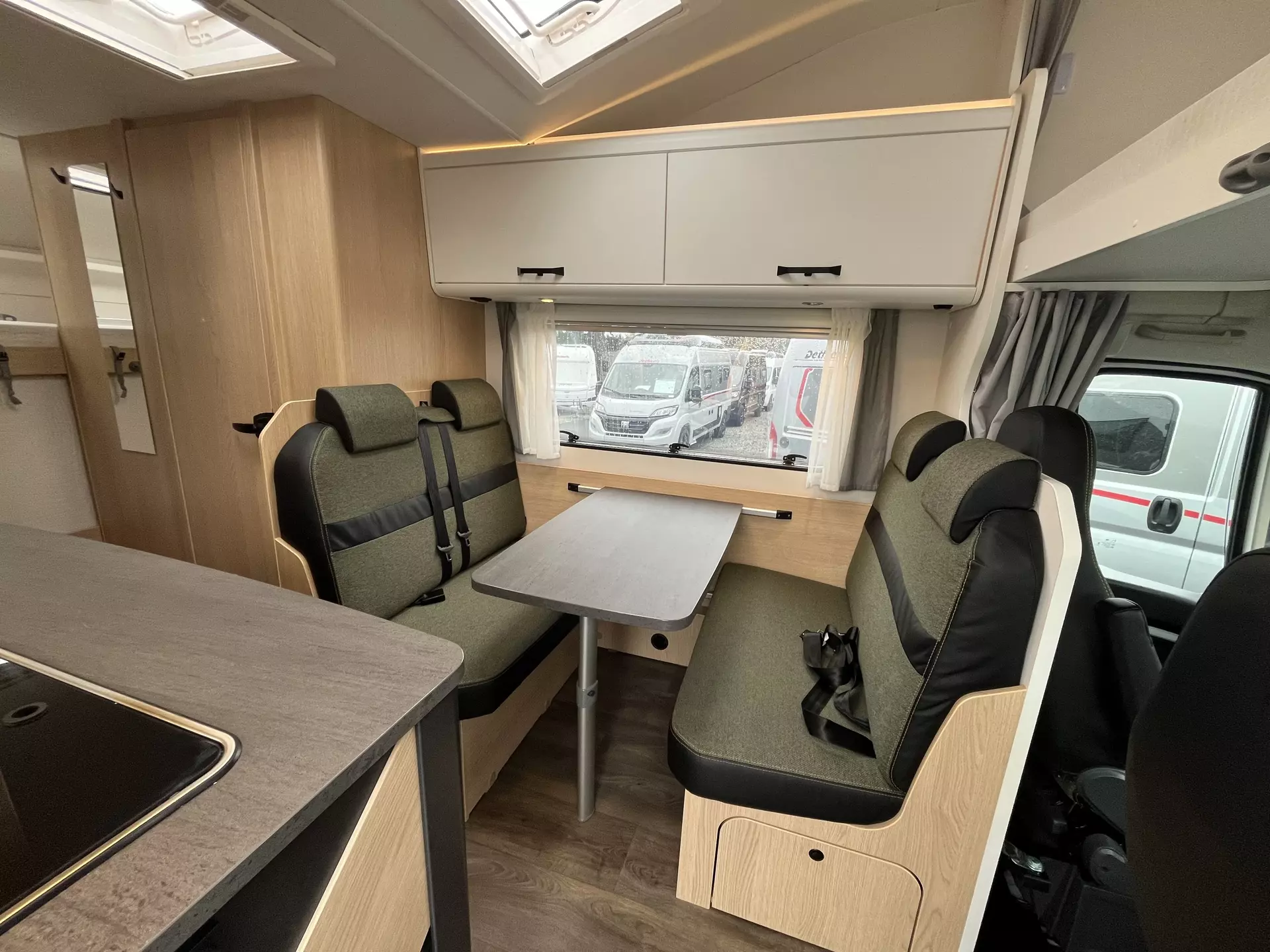 - Sicherheitspaket Alkoven: 2 Kopfstützen und 2 Beckengurte